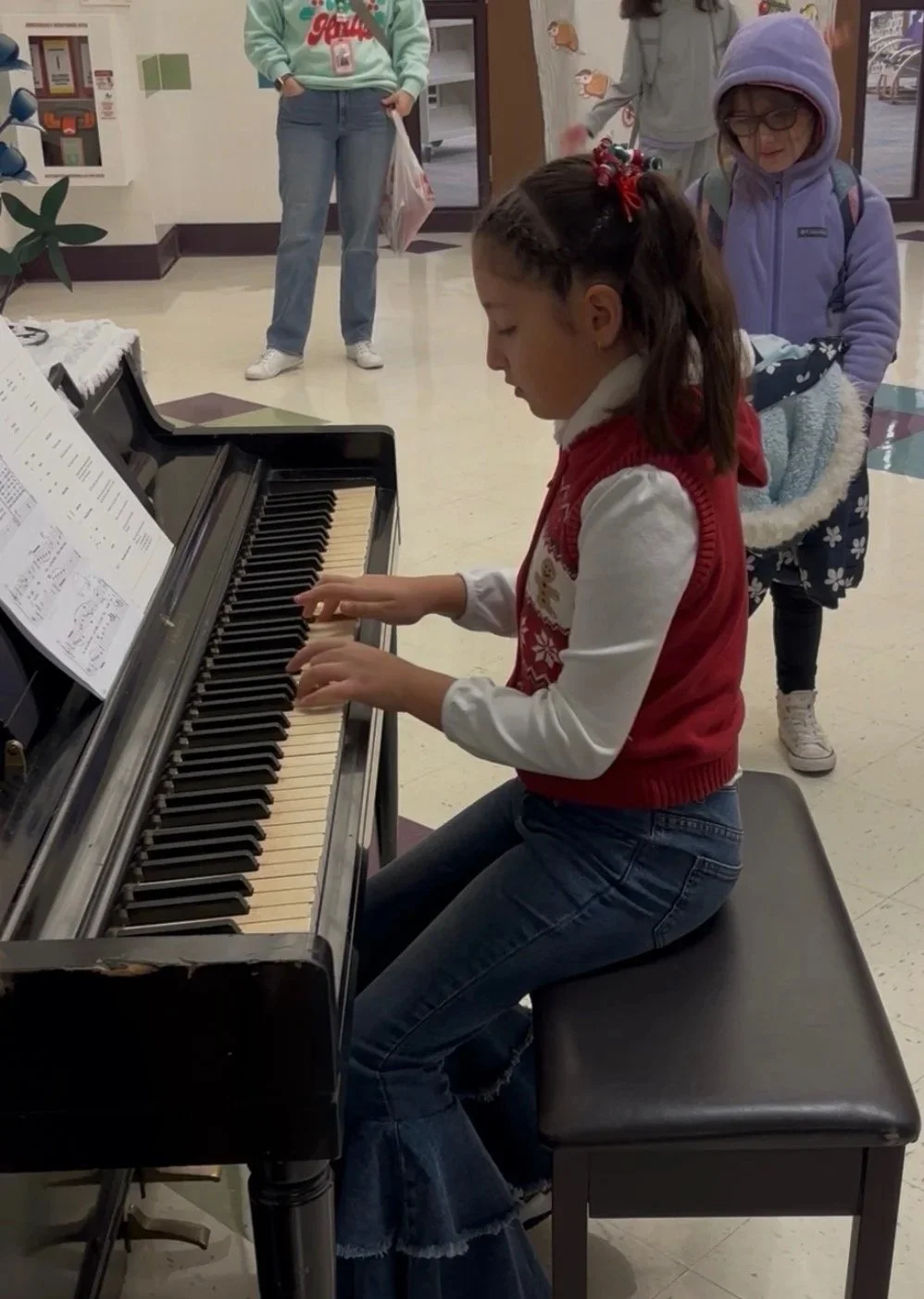 Our students also have the opportunity to play “Morning Melodies”. We have a piano in the hallway and students can sign up to play piano as students arrive in the morning.